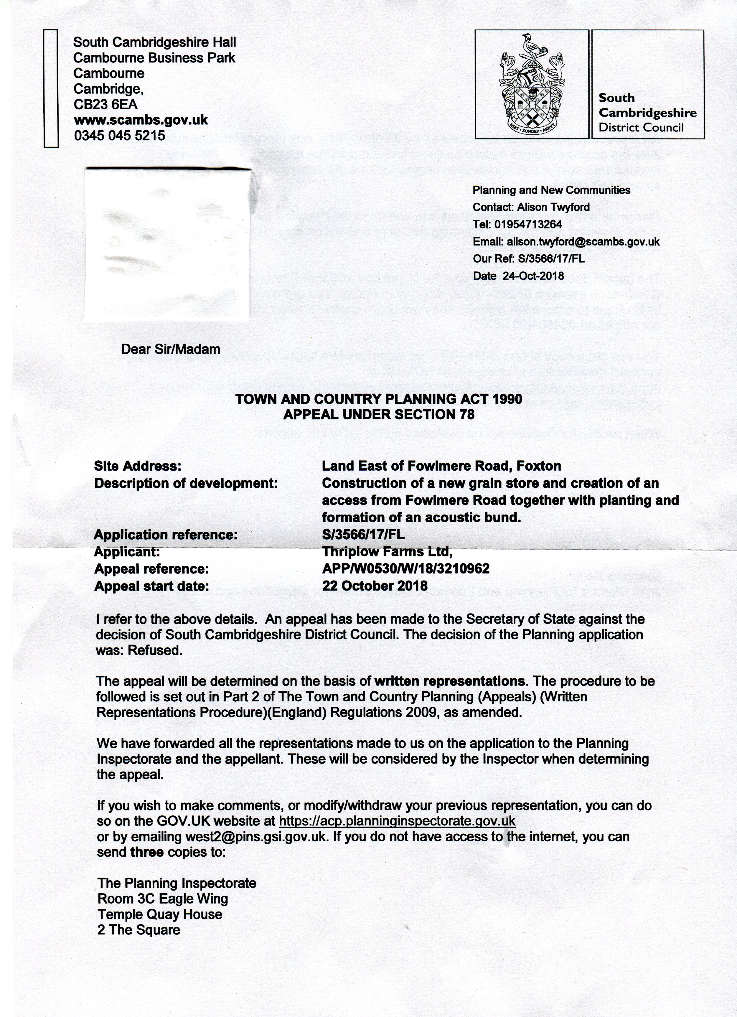 Please see the notice about the Planning Decision for the Grain Store site being appealed.